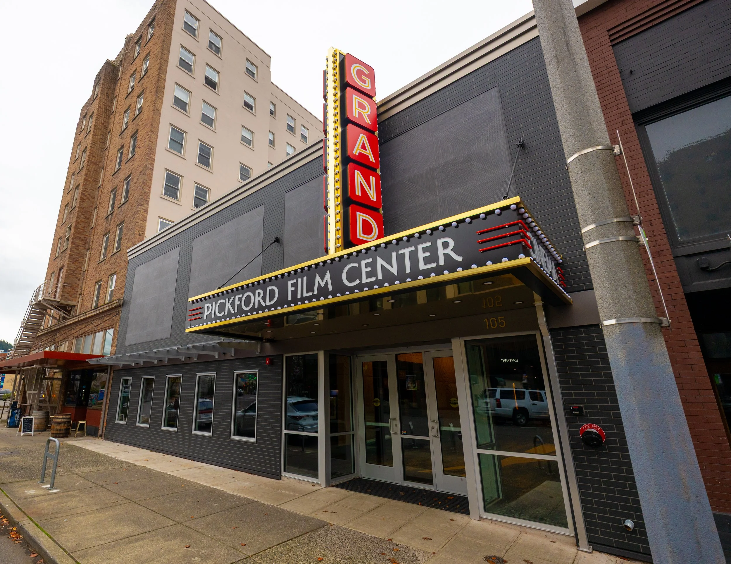 The original Pickford Film Center was founded in 1998 by a group of local film fans who valued film culture. Pictured is the front of the building on November 21, 2025. The original location has two theaters, one with 135 seats and another with 75 seats. The theater's mission is to bring independent films to the local community and create a uniquely Bellingham experience. // Photo by Chayton Engelson
