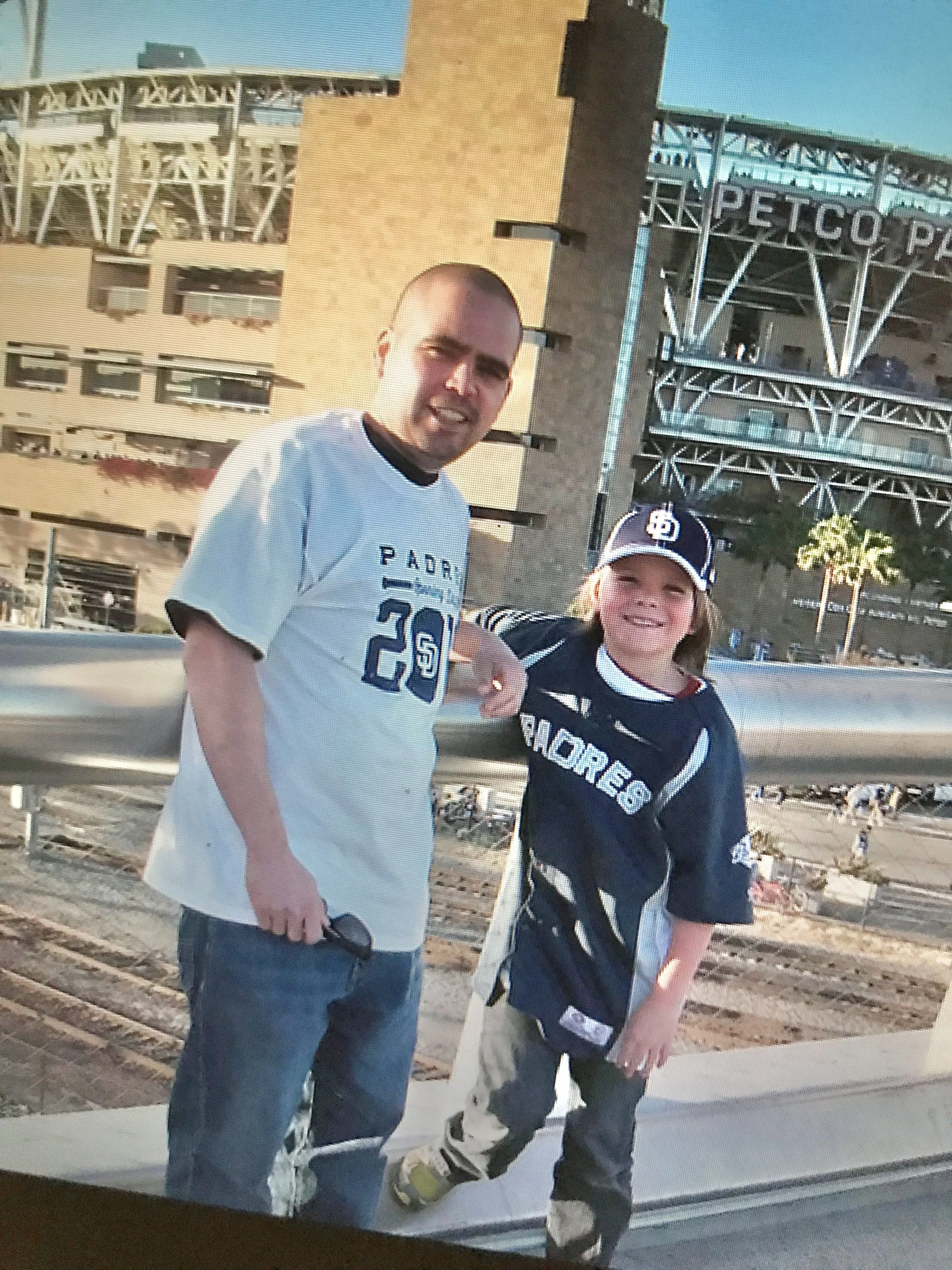 Zen Hill with his dad outside Petco Park in San Diego, California.