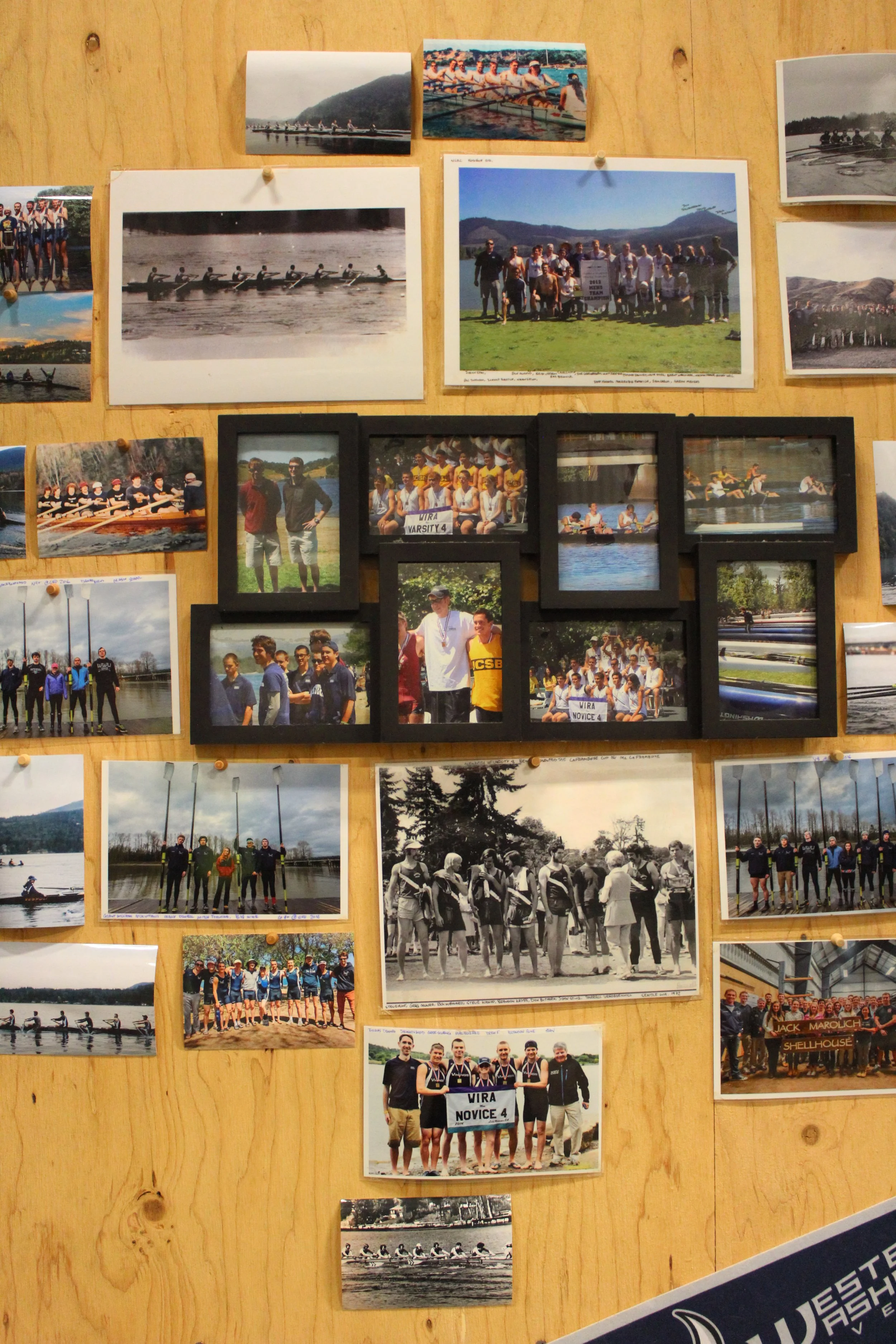 Portraits of the past. Pictures of previous rowing teams hang up on the wall inside the Jack Marolich shellhouse on Lake Whatcom.
