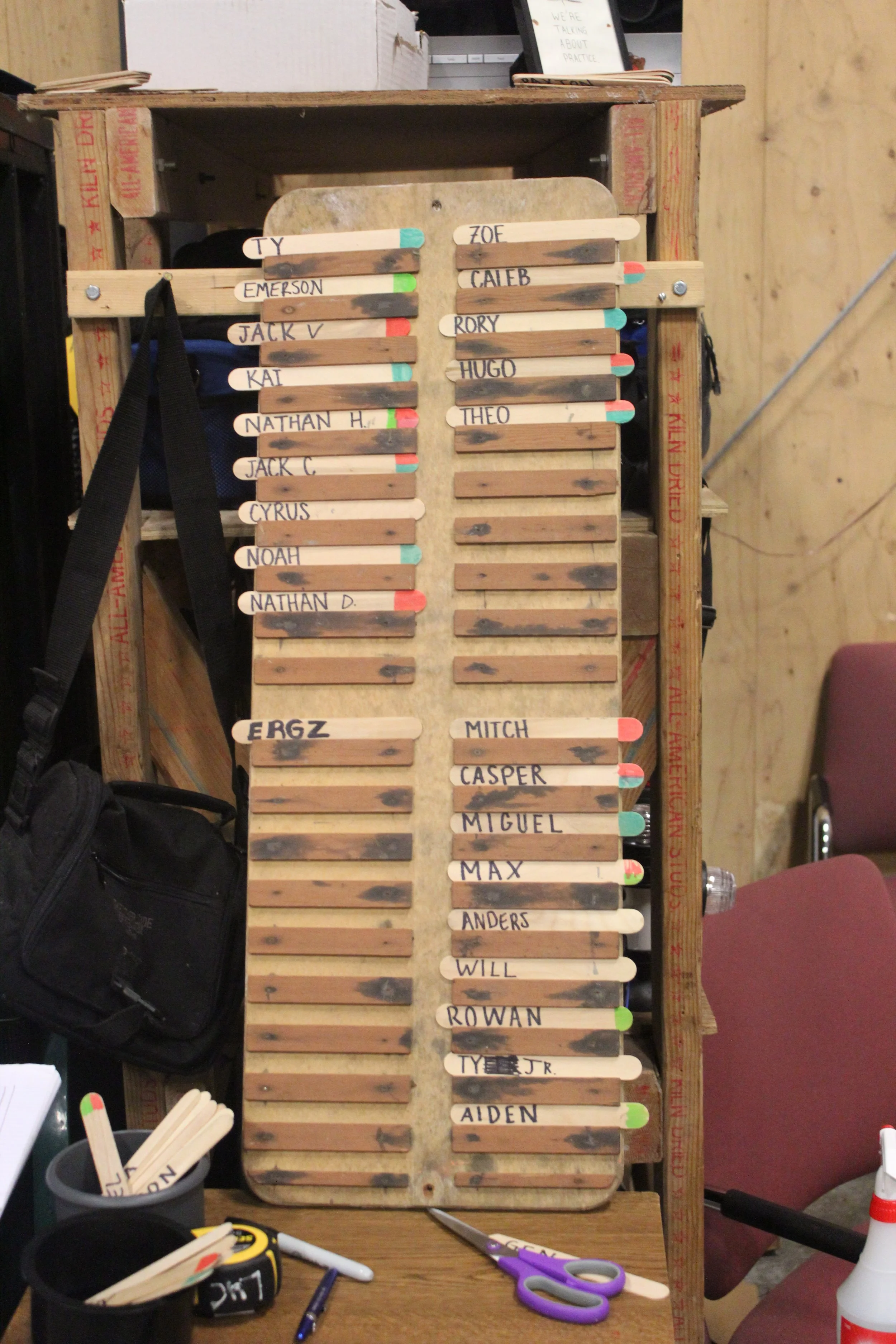 Before heading out onto the water, Carrillo and the other coaches place popsicle sticks showing where each rower will sit on the boat and who their coxswain will be.