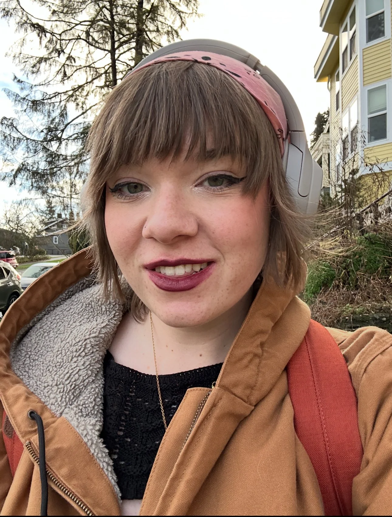 At 21, Stella wears light gray headphones and a tan jacket. // Photo courtesy of Stella Keating.