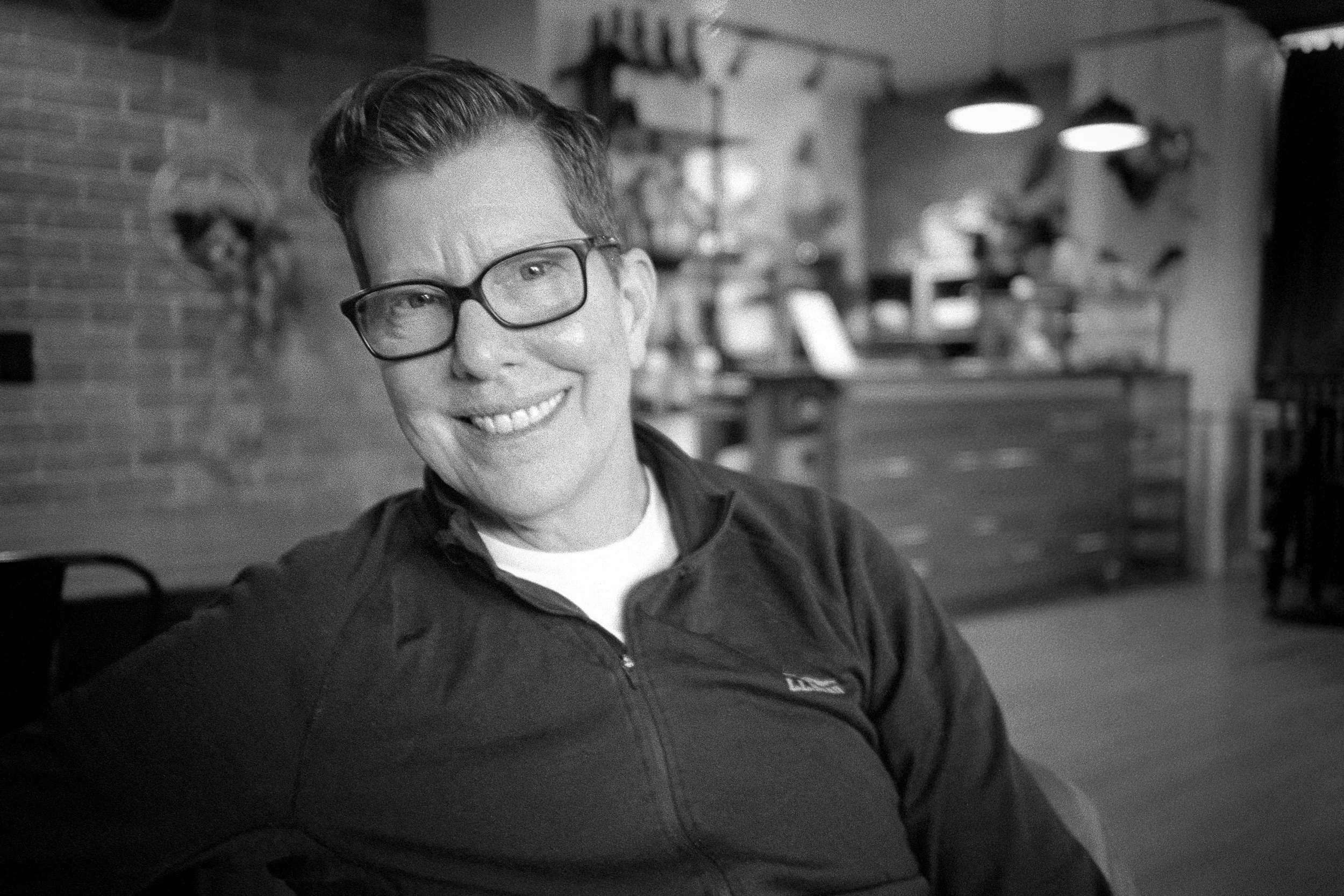 Michelle Harmeier smiles inside the Welcome Road coffee shop. // Photo courtesy of Mark Turner.