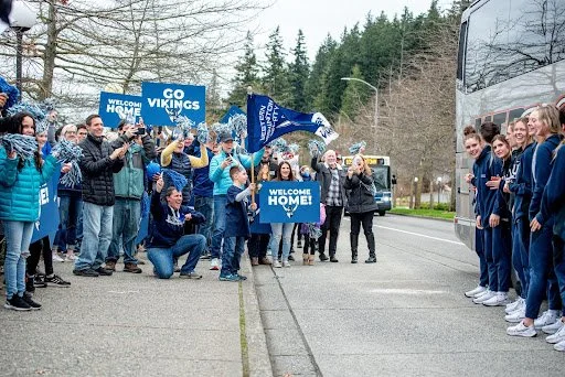 A cheering crowd welcomes the Vikings home to Western Washington University on March 26, 2022, in Bellingham, Washington. // Photo courtesy of WWU Athletics.