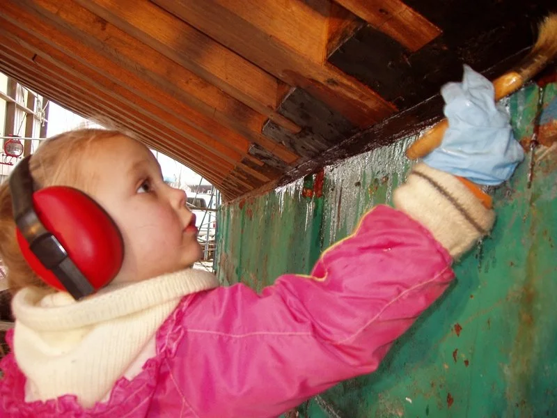 Growing up, I often helped my parents work on the boat. When I was younger, I was given simple tasks so I could safely learn skills. On this day, in 2008, I worked on oiling the wood while the boat was being replanked (replacing the outer wood of the boat).